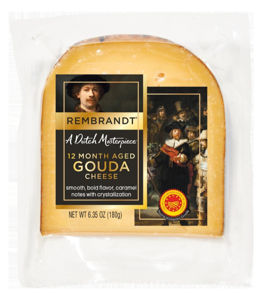 The brand A Dutch Masterpiece combines the two great loves of the Netherlands: good cheese and fine art. Aged for 12 months to develop a smooth, firm texture and a bold, caramel-kissed flavor, A Dutch Masterpiece Rembrandt 12-Month PDO Gouda is a beautifully balanced cheese that pairs well with fine wines, charcuterie, and festive gatherings. Each cheese is crafted with milk from North Holland, certified with the coveted PDO (Protected Designation of Origin) seal, and paired with a different skilled Dutch painter. Find the Rembrandt Gouda alongside other masterpieces like Vermeer and Frans Hals at adutchmasterpiece.com.